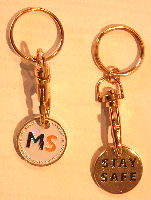 The trolley coin fits all standard supermarket trollies and usually have company or charity logo on it and can also have contact details such as phone numbers, web site, e-mail address etc.